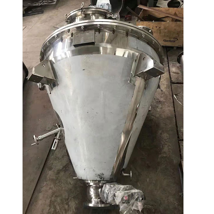 1.單錐真空混合干燥機中的物料在容器內受熱是緊貼容器內壁,由螺旋槳葉自下而上旋轉至容器上部,然后沿主軸呈渦流向下。物料在整個干燥過程中始終在分散運動。物料的運動狀態保證了物料的均衡受熱。