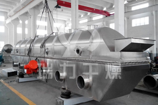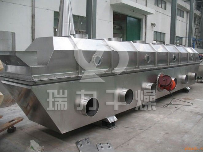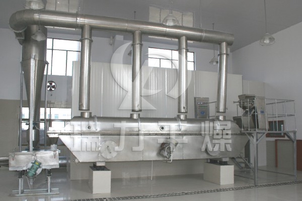 磷酸二氫鉀專用流化床干燥機的物料自進料進口進入機內,在振動力作用下,物料沿水平面流化床拋擲,向前連續運動,熱風向上穿過流化床同濕物料換熱后,濕空氣經旋風分離器除塵后由排風1:3排出.干燥物料由排料進口排出。